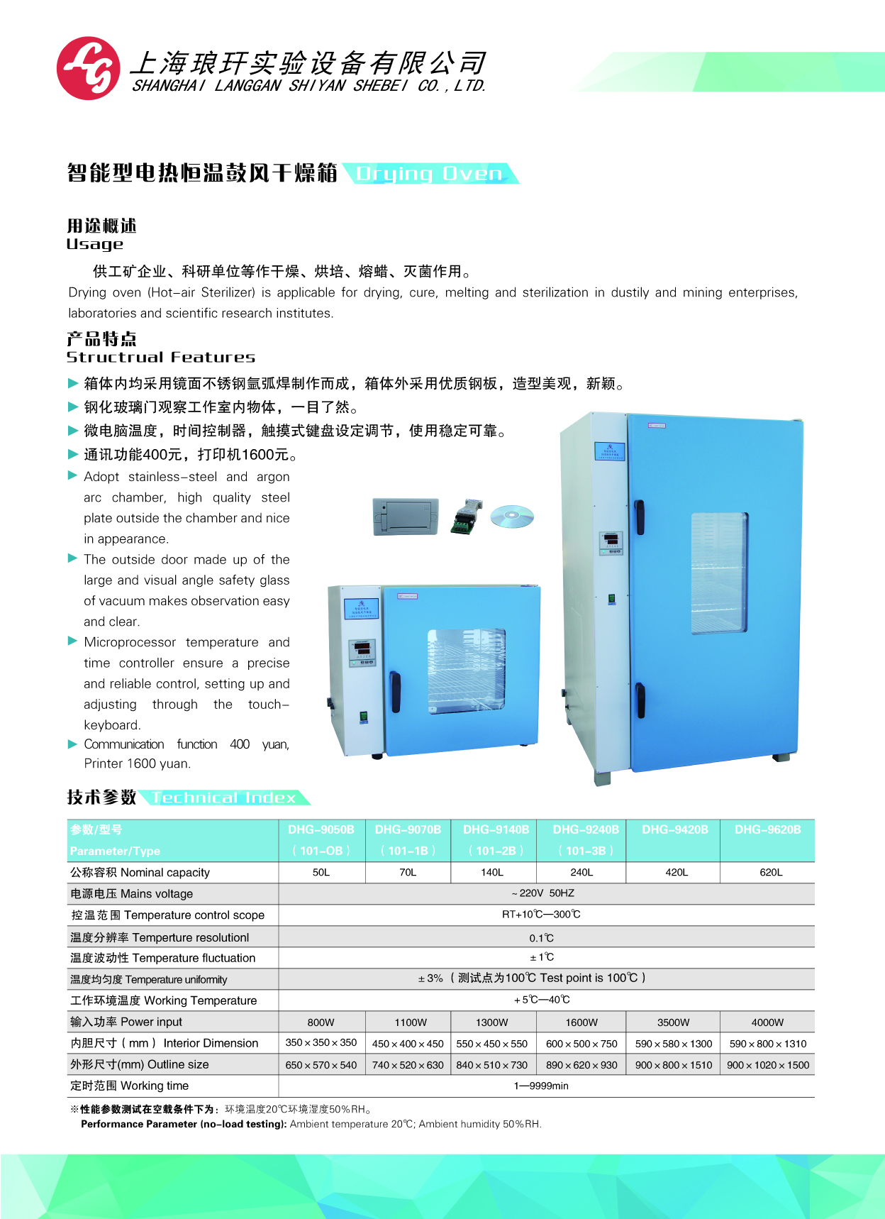 控溫范圍:室溫+5~300℃,控溫精度:±1℃;